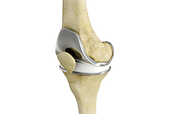 The surgery is performed under spinal or general anesthesia. Your surgeon will make an incision in the skin over the affected knee to expose the knee joint. Then the damaged portions of the femur bone are cut at appropriate angles using specialized jigs. The femoral component is attached to the end of the femur with or without bone cement. The surgeon then cuts or shaves the damaged area of the tibia (shinbone) and the cartilage. This removes the deformed part of the bone and any bony growths, as well as creates a smooth surface on which the implants can be attached. Next, the tibial component is secured to the end of the bone with bone cement or screws. Your surgeon will place a plastic piece called an articular surface between the implants to provide a smooth gliding surface for movement. This plastic insert will support the body’s weight and allow the femur to move over the tibia, like the original meniscus cartilage. The femur and the tibia with the new components are then put together to form the new knee joint. To make sure the patella (knee cap) glides smoothly over the new artificial knee, its rear surface is also prepared to receive a plastic component. With all the new components in place, the knee joint is tested through its range of motion. The entire joint is then irrigated and cleaned with a sterile solution. The incision is carefully closed; drains are inserted and a sterile dressing is placed over the incision.
